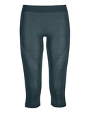 3/4 Skiunterhose aus Merinowolle Kunstfasermischung für Frauen, die sehr stark schwitzen. Die Ortovox Competition Light Short Pants kombiniert die klimaregulierenden Vorteile von Merinowolle mit der Belastbarkeit und schnellen Trocknung der Polyamid Fasern. Durch ein nahtfreies Rundstrickverfahren wird sehr hohe Elastizität erreicht und ein faltenfreie Sitz ermöglicht, bei dem Aufscheuern im Schritt kein Thema ist. Durch die 3/4 Länge gibt es am Schienbein keine Druckstellen, da es keine Überlappung am Übergang zu den Skisocken gibt. Durch die Bodymapping Webstruktur wird die Muskulatur an den entscheidenden Stellen vor Auskühlung geschützt.
