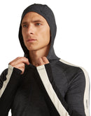 Das Icebreaker Merino 200 Oasis Plus Half Zip Hood ist eine mittelwarmes Herren Merino Shirt mit Kapuze und Streifendesign am Oberarm. Das 200g/m² dicke Oberteil ist durch 100% Merinowolle komfortabel warm und geruchsabweisend. Die Kapuze schließt gut ab und schützt den Kopf vor Wind und Kälte. Raglan Ärmel sorgen für Bewegungsfreiheit im Schulterbereich und Flachnähte verhindern Druckstellen. Daumenschlaufen verhindern ein verrutschen der Ärmel und bilden einen schützenden Übergang zwischen Handschuh und Jackenärmel. Das Merino Longsleeve ist aufgrund der mittleren Materialstärke ein idealer Allrounder fürs Skifahren, Skitouren -oder Schneeschuhlaufen.