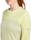Das Icebreaker Women 125 Cool Lite Sphere Colour Block Long Sleeve ist ein atmungsaktives Funktionsshirt aus natürlichen Rohstoffen. Die Kombination von Merinowolle und der Pflanzenzellulose Faser Lyocell (Tencel®) macht dieses Langarmshirt besonders sanft zur Haut und eignet sich besonders bei einer Neigung zu starkem Schwitzen. Außerdem schützt die Stoffmischung sehr gut vor UV-Strahlung. Da dunklere Farben UV-Strahlen noch besser reflektieren ist der Schulterbereich dunkel abgesetzt. Die bewährte Geruchshemmung der Merinowolle ermöglicht darüber hinaus einen mehrtägigen Einsatz ohne Waschen. Das spart Gepäck auf Mehrtageswanderungen.