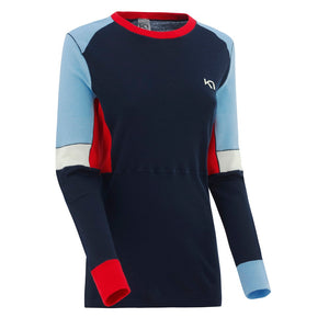 Extravagantes Merino Longsleeve mit Stehkragen und filigranem Reißverschluss für wintersportbegeisterte Frauen, denen einfarbig zu langweilig ist. Kari Traa aus Norwegen steht für unverwechselbares Design und einen femininen Schnitt. 100% superweiche Merinowolle sorgt für optimalen Temperaturausgleich und macht das Yndling Half Zip zur Merino Skiunterwäsche mit dem Wohlfühlplus.