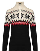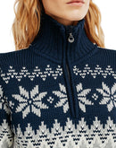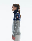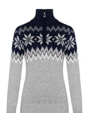Dieser warme Norweger Merino Pullover für Damen hat einen extra hohen, anschmiegsamen Kragen und einen langen Schnitt. Die dicke Heavy-Knit Strickstruktur vereint sich mit extra feiner Premium Merinowolle (19,5 Mikron) zu einem bequemen Kuschelpulli mit modernem Norwegermuster. Der Dale Myking Sweater ist perfekt als Midlayer für eiskalte Wintertage und ein Wohlfühlkleidungsstück von hervorragender Qualität.