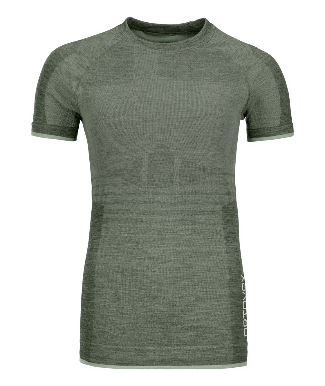 Das Ortovox 230 Competition Short Sleeve für Damen ist ein hochelastisches Funktionsshirt für den leistungsorientierten Sport, bei kühlen Außentemperaturen, und vereint die Vorteile von Merinowolle und Kunstfasern. Durch das nahtlose Rundstrickverfahren und die zonengenaue Materialplatzierung engt das Shirt nicht ein, sondern erlaubt maximale Bewegungsfreiheit. Der athletische Schnitt sorgt für einen perfekten und faltenfreien Sitz. Der Stoff passt sich durch 2 verschiedene Materialstärken den Wärmezonen des Körpers an. An den schnell aufheizenden Partien kommen kanalisierende Riffelstrukturen aus 190g/m² Merinowolle zum Einsatz, während kältesensible Bereiche mit der 230 g/m² dicken Stoffstärke bestückt sind. Die Ortovox 230 Competition Linie wurde bereits mehrfach durch den ISPO Ski Award und den Outdoor Industry Award prämiert.