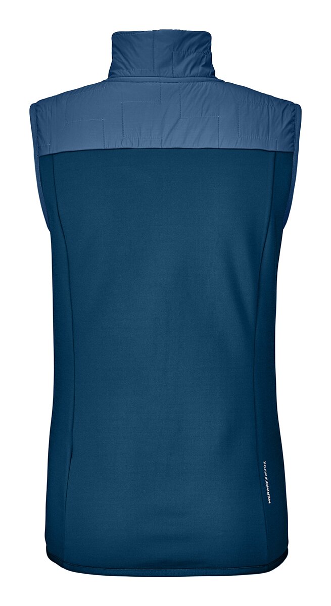Die Ortovox Fleece Plus Vest Damen fühlt sich durch feinste Merinowolle auf der Innenseite angenehm weich an. Der ergonomische Schnitt und die Verarbeitung elastischer Materialien im Oberstoff sorgen für eine sportliche Passform und gleichzeitig viel Bewegungsfreiheit. Die beiden Seitentaschen eignen sich zum Verstauen diverser Tourenaccessoires oder einfach nur zum Aufwärmen der Hände. Durch die extra dicke Stoffstärke ist die Weste als Midlayer ideal für sehr kalte Tage. Die Schulterverstärkungen schützen sowohl vor Nässe wie auch vor Abrieb durch den Rucksack.