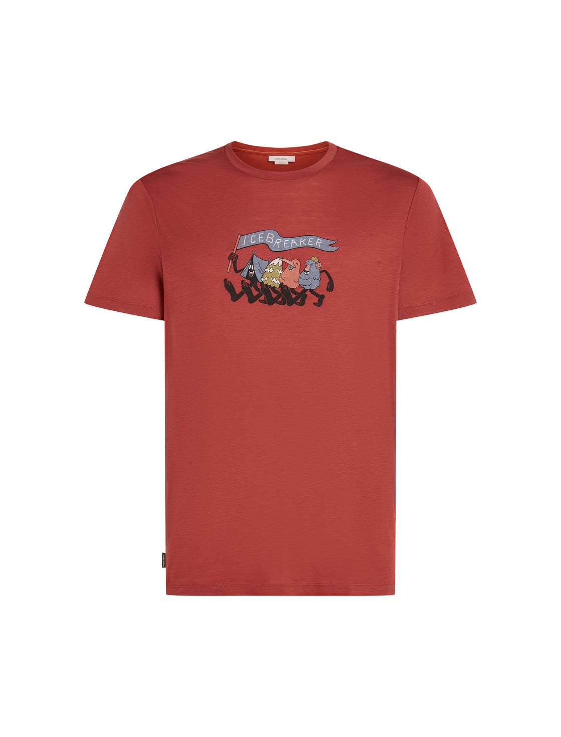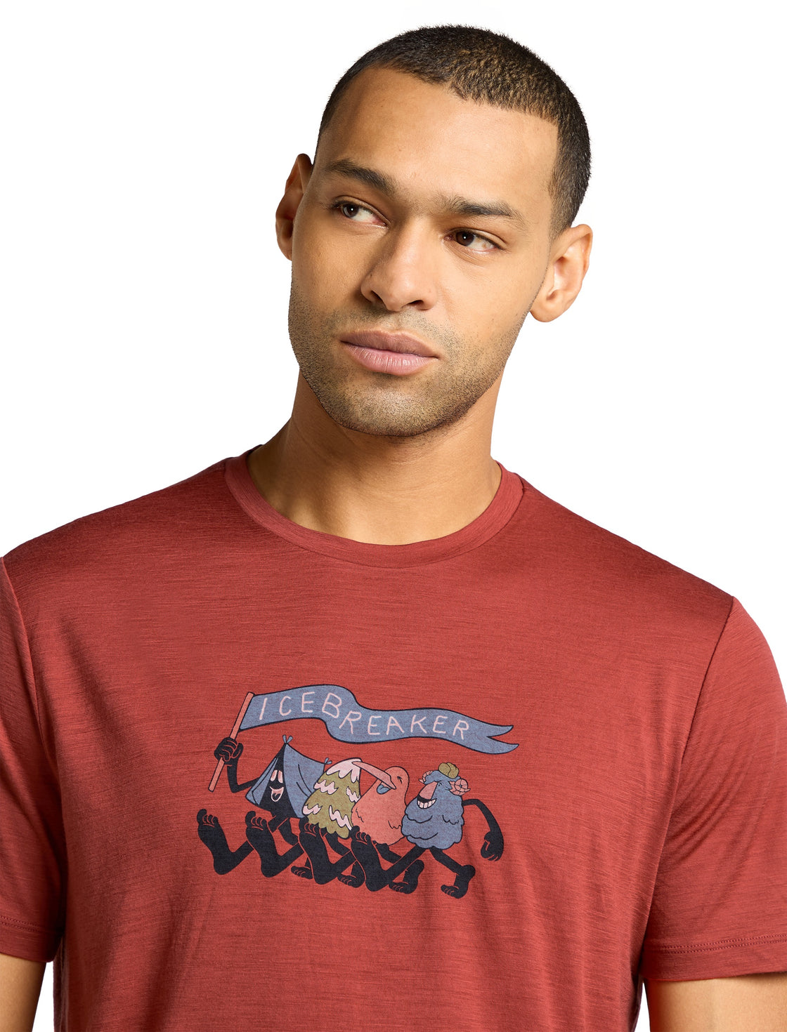 Das Icebreaker Tech Lite SS Tee Hike Together bringt ein bisschen Witz in deine Outdoor Garderobe. Die Motiv Figuren stellen eine nicht ganz ernst gemeinte Wandergemeinschaft dar (Zelt, Tannenbaum, neuseeländischer Kiwi Vogel, Merino Schafbock).