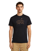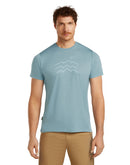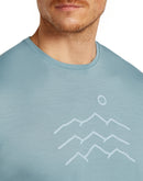 Das Icebreaker Men Sphere SS Tee Explore More ist ein schnelltrocknendes Tencel®-Merino Shirt mit einem Gipfelpanorama Brustprint. Die CoolLite® Stoffmischung ist speziell für heiße Außentemperaturen oder ein erhöhtes Schweißaufkommen entwickelt worden. Die pflanzliche Zellulosefaser Tencel® hat ähnliche Eigenschaften wie Seide und ergänzt sich sehr gut mit Merinowolle. Die Haptik wird glatter und noch weicher und es entsteht eine kühlende Wirkung. Das Funktionsshirt ist hochatmungsaktiv und kommt komplett ohne Kunstfasern aus. Der natürliche Stoff bildet keinen Nährboden für Geruchsbakterien und ist daher ideal für mehrtägige Wanderungen.
