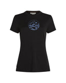 Dieses Icebreaker Damen Shirt mit dem kreisrunden Camping Motiv wird dir beweisen, dass die Natur es besser kann als sogenannte Funktionsfasern aus Polyester & Co, denn T-Shirts aus Merinowolle kühlen, wenn es heiß ist und wärmen sogar noch im nassen Zustand. Kein anderes Material kann ausgewogener auf Temperaturunterschiede reagieren, als Wolle. Auch auf mehrtägigen Trekkingtouren kannst du dieses Shirt Tag und Nacht anlassen, ohne Wechselgarnituren mitnehmen zu müssen, denn Gerüche lassen lange auf sich warten. Vor dem Lagerfeuer kannst du außerdem entspannt sitzen bleiben, denn Wolle ist schwer entflammbar und somit anders als Kunstfasern nicht gefährdet für Brandlöcher durch Funkenflug.