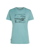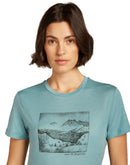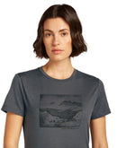 Das Icebreaker Tech Lite Short Sleeve Tee Terrain für Damen hat einen unvergleichlichen Wohlfühlfaktor und ist sanft zur Haut. Die feine Merinowollqualität macht das Shirt besonders weich und bietet auch bei wechselndem Wetter einen hervorragenden Temperaturausgleich. Merino Funktionsshirts von Icebreaker haben durch den einzigartigen Faseraufbau der Wolle eine von Natur aus antibakterielle und selbstreinigende Wirkung. Sie können einfach über Nacht ausgelüftet und am nächsten Tag wieder angezogen werden. Das spart Gewicht und Packmaß bei mehrtägigen Outdoor Trips. Aber auch in der Freizeit macht das T-Shirt mit dem künstlerischen Landschaftsmotiv eine gute Figur.