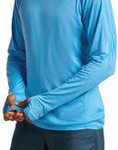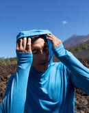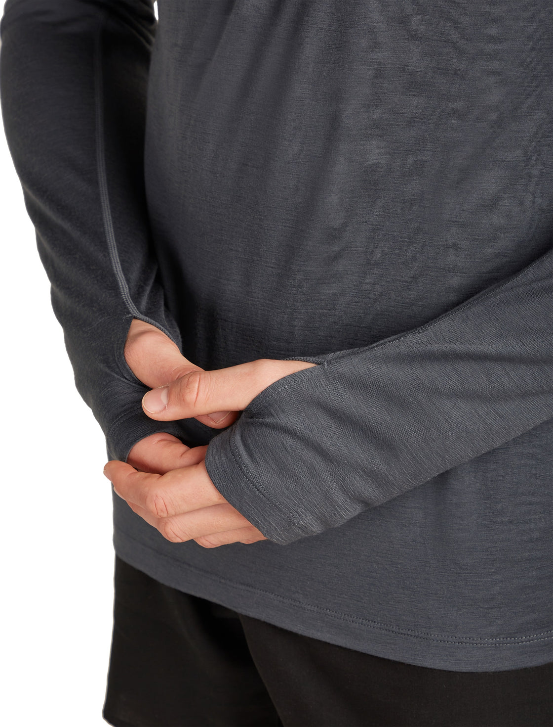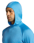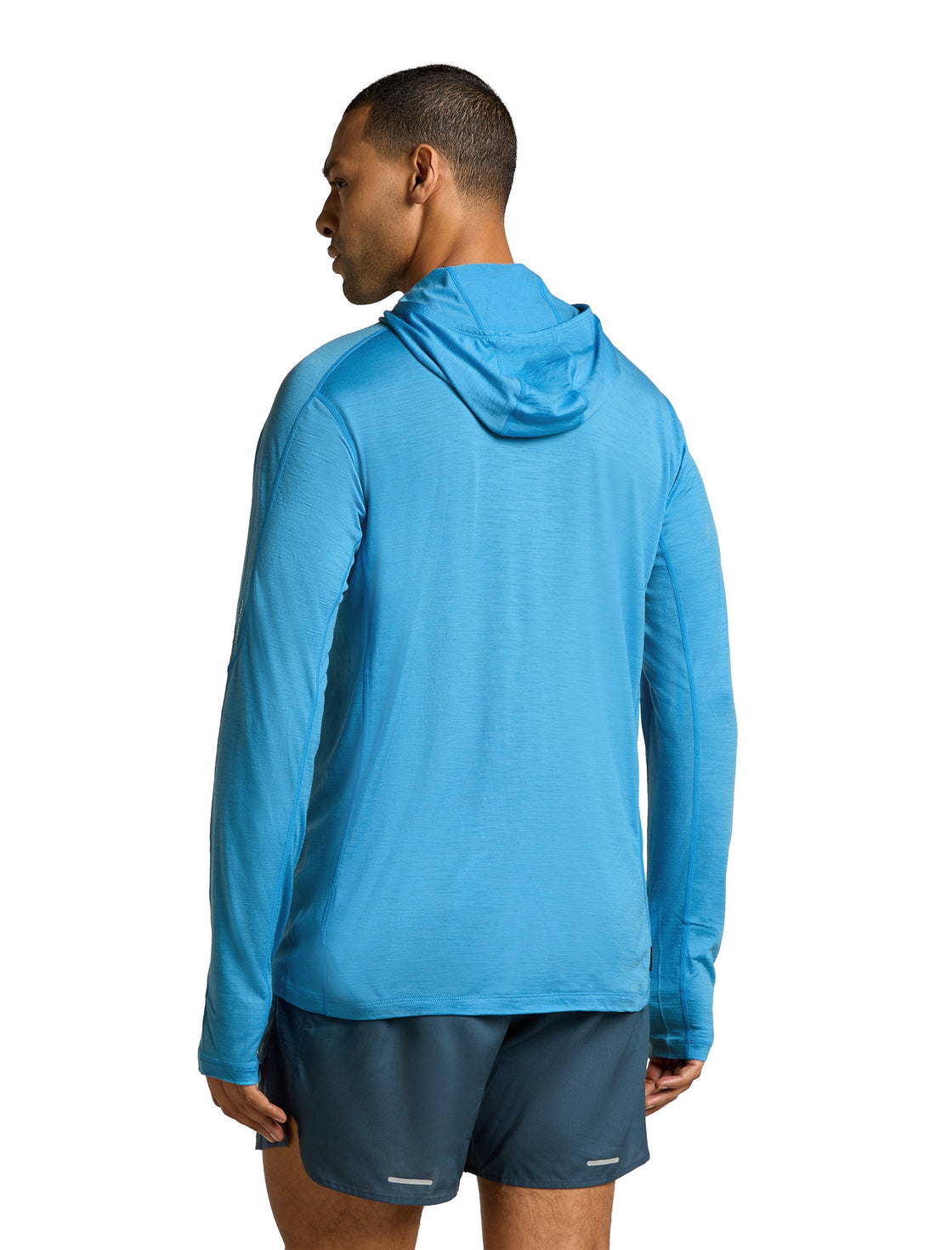 Dieser dünne Sun-Hoody aus besonders feiner und weicher Merinowolle bietet dir von Natur aus einen hohen Sonnenschutz und eine gleichmäßige Regulierung der gefühlten Temperatur. Angenehmer Nebeneffekt hierbei ist, dass die sogenannte Atmungsaktivität bei Wolle nicht über die permanente Schweißverdunstung funktioniert, sondern über den Puffer-Effekt innerhalb der Wollfaser. Das führt zu weniger Dehydration und mehr Leistungsfähigkeit. Außerdem sind die geruchshemmenden Eigenschaften der Merinowolle besonders bei schweißtreibender Witterung von großem Vorteil.