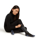 Die Icebreaker Ski+ Light sind leichte Damen Socken zum Skifahren oder Skitourengehen. Die strategisch platzierte Polsterung an der Fußunterseite, dem Schienbein und im Zehen-und Fersenbereich verringern Druckstellen im Skischuh. Die Merinowolle sorgt für ein trockenes und wärmeregulierendes Fußklima und verringert die Bildung von Gerüchen.