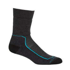 Die kurzen Damen Merino Wandersocken Hike+ Lite Mini halten deine Füße beim Wandern in Top Form. Die anatomisch geformte Sockenspitze sorgt für eine optimale Passform und strategische Polsterzonen bieten ein Maximum an Tragekomfort. Merinosocken sorgen speziell beim Einsatz mit wasserdichten Wanderschuhen für ein trockenes Gefühl, da die Wolle sehr viel Feuchtigkeit puffern kann. Die infolge weniger aufgeweichte Haut ist somit wesentlich besser vor Blasenbildung geschützt! Dies Eigenschaft ist besonders wichtig, da die Membranporen von wasserdichten Schuhen schnell verstopfen, weil Schuhe nicht wie Membrankleidung gewaschen werden können, um die Poren wieder frei zu machen.