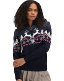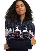 Der Dale of Norway Christmas Sweater ist ein kuschlig weicher Merinopullover für Damen mit winterlichem Norwegermuster auf Vorder-und Rückseite. Doch nicht nur das Design stimmt auf die kalte Jahreszeit ein, sondern auch die hohe Wärmeleistung. Dank 100% Merinowolle ist der Norwegerpullover ein zuverlässiger Wärmespender und bietet ein Wohlfühlklima der besonderen Art. Der Quarter-Zip Kragen erleichtert das An-und Ausziehen und setzt einen farblichen Kontrast zum Muster.