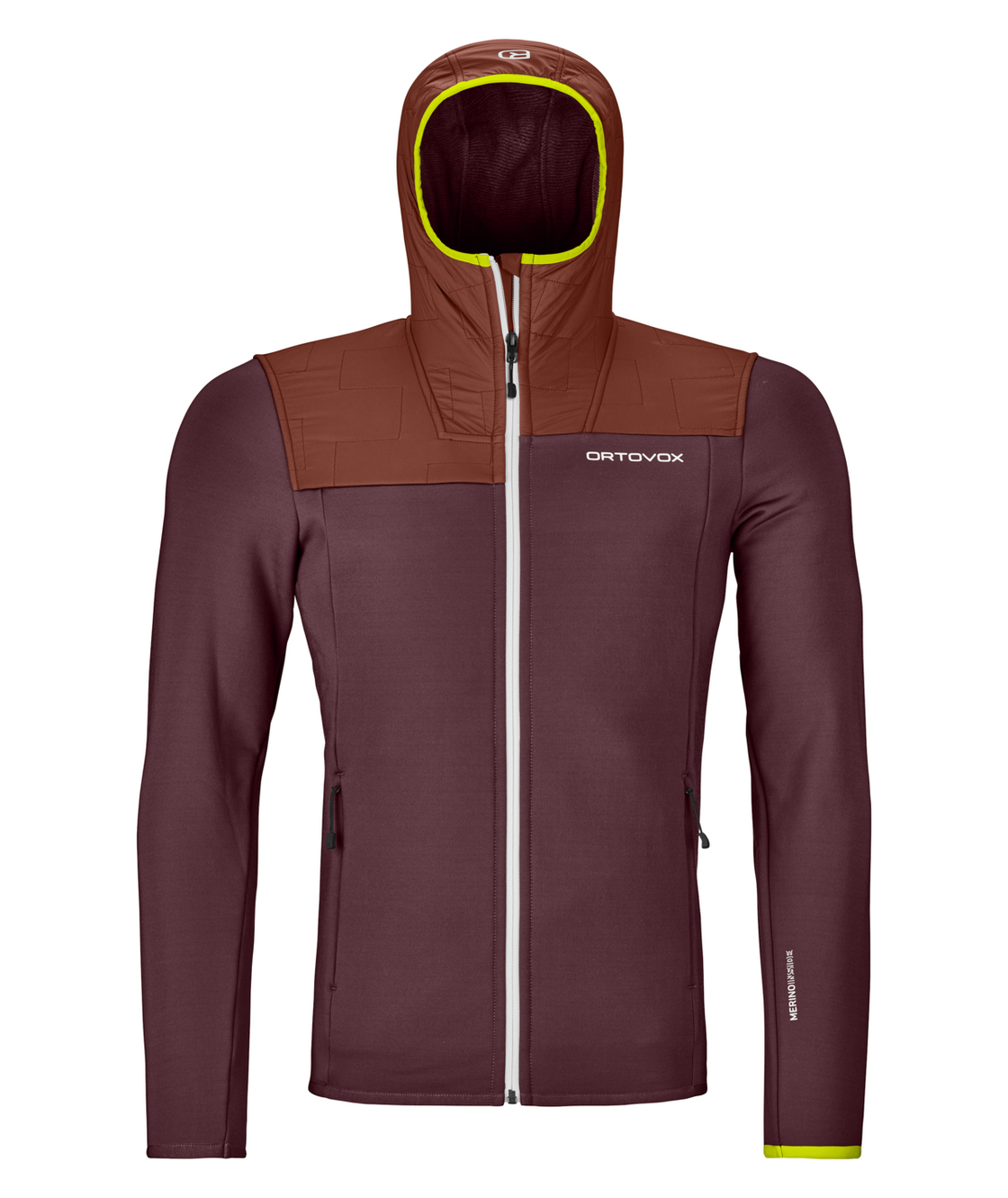 Durch feinste Merinowolle auf der Innenseite fühlt sich der Ortovox Fleece Plus Hoody für Herren sehr angenehm auf der Haut an. Der ergonomische Schnitt und die Verarbeitung elastischer Materialien im Oberstoff sorgen für eine optimale Passform und viel Bewegungsfreiheit. Die beiden Seitentaschen eignen sich zum Verstauen diverser Tourenaccessoires oder einfach nur zum Aufwärmen der Hände. Durch die extra dicke Stoffstärke ist die Jacke ideal für sehr kalte Tage. Die Schulterverstärkungen schützen sowohl vor Nässe wie auch vor Abrieb durch den Rucksack.