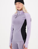 Thermo Merino Skiunterwäsche Oberteil für Damen mit hoch abschließendem Kragen und asymetrischem Reißverschluss der in offener Stellung von einem Merino Mesh hinterlegt ist, zum Schutz des Kinns und zur Ventilation. Feinste neuseeländische Merinowolle in extra warmer 250g/m² Stärke machen das Mons Royale Olympus Half Zip zur 1. Wahl an eiskalten Skitagen. Die Daumenschlaufen dienen auch als Schneeschutz unter dem Skihandschuh und erleichtern das Anziehen der nächsten Bekleidungsschicht. Unter den Achseln ist ein dünnerer Merino-Mesh Einsatz eingearbeitet, um die Ventilation zu unterstützen. Der ausgeklügelte technische Schnitt mit Raglan Ärmeln und Flachnähten sorgt für einen ergonomischen Sitz mit optimaler Bewegungsfreiheit. Mons Royale verarbeitet ausschließlich feinste Merinowolle aus Neuseeland ohne Mulesing.