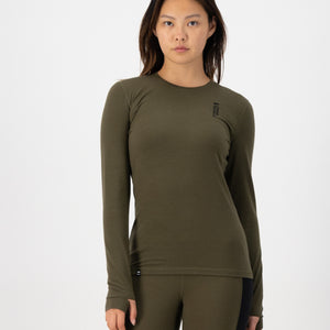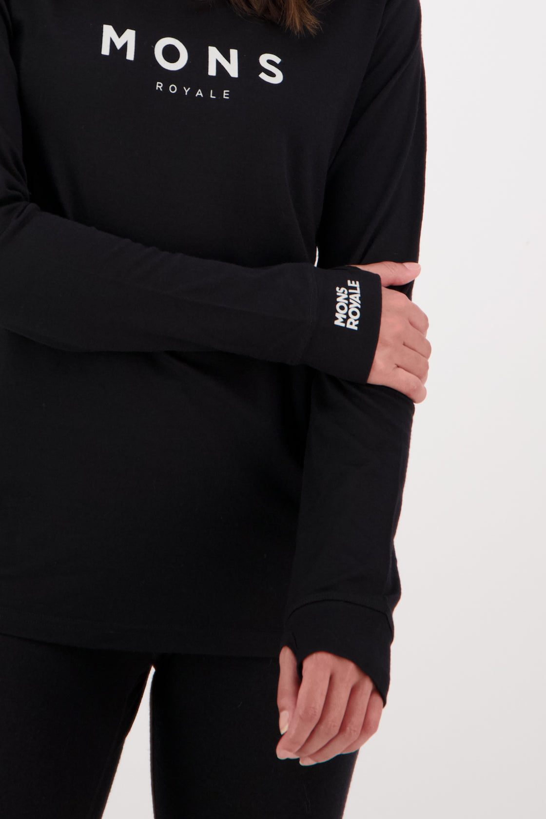 Dieses Merino Longsleeve ist das richtige für Frauen, die ihre Merino Skiunterwäsche gerne lockerer tragen. Das lässige Mons Royale Yotei Longsleeve bietet dank 100% Merinowolle hervorragenden Klimakomfort. Die Daumenschlaufen verhindern ein Hochrutschen der Ärmel beim Überziehen anderer Kleidung. Durch den extra lange Schnitt deckt das Langarmshirt die Hüften ab und unterbindet das Eindringen von kalter Luft. Die hochwertige neuseeländische Merinowolle ist kratzfrei, atmungsaktiv und anti-mulesing zertifiziert.