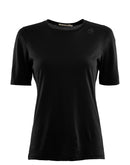 The Aclima Lightwool Undershirt Tee Women is a thin undershirt made of 100% finest merino wool (17.5 microns) and is therefore particularly skin-friendly. If you don't want to miss out on the comfort of merino under your office clothes or sweater, this shirt offers odor-binding and temperature-regulating base layer of the highest quality. The long cut prevents the shirt from slipping out of the trousers and protects against drafts. Due to the super-fine fabric quality, which focuses on maximum comfort, the T-shirt is only suitable for wearing underneath and is not suitable for a backpack.