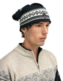 The Dale of Norway Vail Hat is a thick and coarsely knitted Norwegian hat for men and is durable and snowproof thanks to the robust Norwegian new wool on the outside. The forehead area on the inside is lined with merino wool for scratch-free comfort. The warm wool hat is suitable for skiing and winter hiking in sub-zero temperatures.