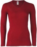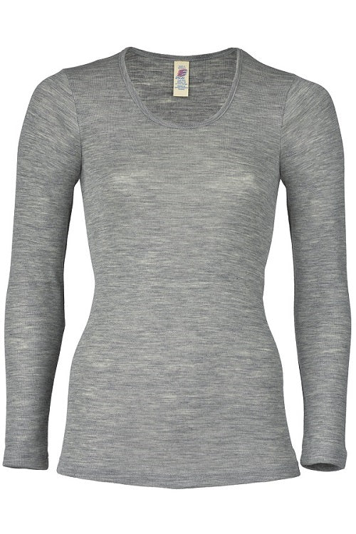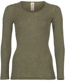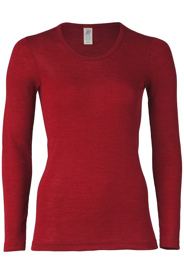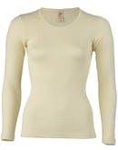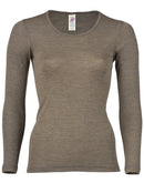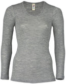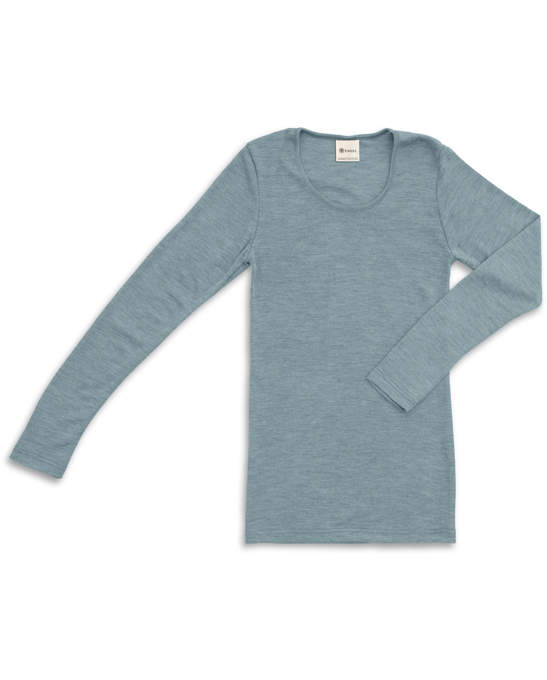 The Engel merino silk shirt with long sleeves is comfortable women's underwear for everyday use. The natural fiber blend (70/30) is particularly soft and comfortable to wear and ensures a balanced temperature sensation. Merino wool and silk complement each other perfectly, as the fabric warms in cold weather and cools in hot weather and when active. Skin moisture is quickly absorbed and no unpleasant odor develops. The Engel women's long-sleeved shirt is machine washable at 30°.