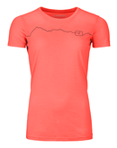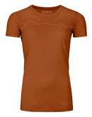 Show your enthusiasm for the mountains with this lightweight Merino-Tencell® T-shirt for women. A panoramic peak line that continues from the Ortovox logo adorns the upper chest area. The particularly breathable material mix, which combines merino wool with the wood-based cellulose fiber Tencel®, gives this Ortovox functional shirt a silky feel and more stability. Whether you're on a leisurely day tour or a multi-day summit crossing, this quick-drying shirt is the right base layer for any weather. Cool in the heat and warm in the cold, is that possible? Yes, wool has it - see for yourself!
