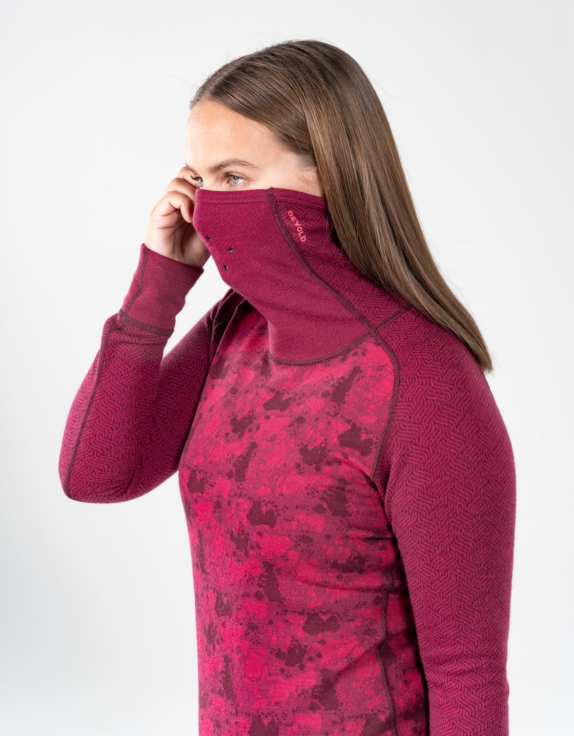 The Devold Kvitegga High Neck not only offers you the warming comfort of 100% merino wool but also 2 designs in one top, a patterned side and a neutral side that you can simply turn over depending on your outfit. The high turtleneck is equipped with breathing holes to reduce condensation. This saves you having to wear a scarf when skiing and the collar is not so tight.