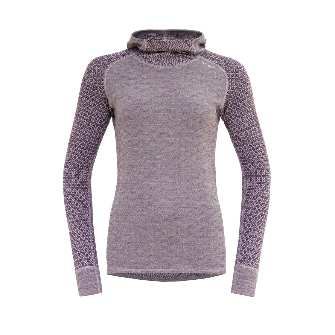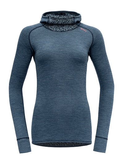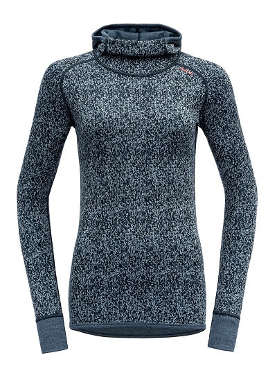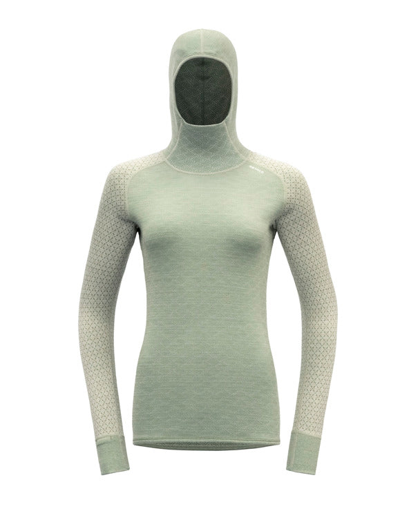 The Devold Kvitegga Hoodie is a functional underwear for women that scores points for the warmth and comfort of 100% merino wool, as well as the practical reversibility, which transforms the top into a new design. Devold Merino underwear is slim and long cut and particularly gentle on the skin. With the warm fabric thickness of 230g/m² and the close-fitting hood that also fits under a helmet, the hooded shirt is the perfect ski underwear for cold days.