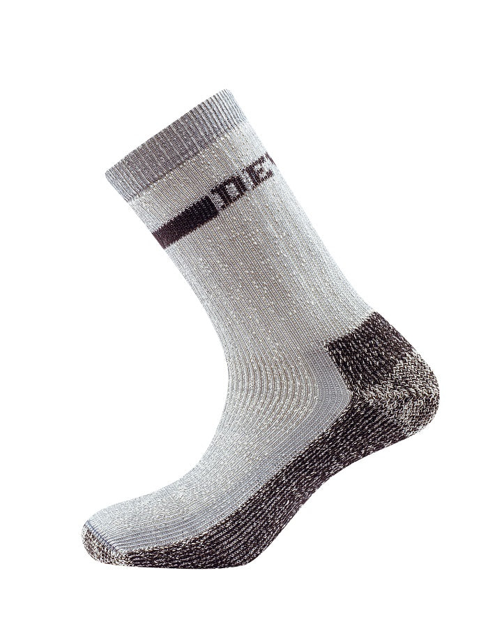These extra warm Merino hiking socks in a classic thick knit style offer top warmth even in icy cold thanks to a high Merino wool content, as well as an excellent foot climate and a dry feel. With the Devold Outdoor Heavy Sock, the nylon fibers are placed on the outside and on the stressed areas such as heels and toes to protect the wool from abrasion. The inside with skin contact offers comfortable padding thanks to a looped knit structure made of the finest Merino wool. Devold Merino socks are manufactured in the company's own factory according to EU standards and exclusively with mulesing-free wool produced.