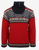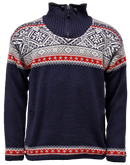 The windproof Norwegian sweater Bergen is the perfect clothing for your outdoor activities in cold temperatures. The Norwegian windbreaker is knitted from 3-layer 100% worsted wool and thanks to the Windstopper K-100 fabric it is also extremely warm, water-repellent and breathable, meaning that the body's own moisture can be wicked away during strenuous activities. The styling is inspired by the classic Scandinavian look with horizontal stripes of geometric patterns and an expression of the outdoor lifestyle. The high, ribbed knitted collar has an adjustable elastic drawstring that can be tightened in particularly windy weather to ensure even better protection. A zipper can be opened at the front to let in fresh air as desired. The Norwegian ski sweater also has two zippered side pockets.