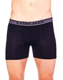 Die Icebreaker Anatomica Boxer w/Fly hat einen Eingriff vorne und eine anatomisch anliegende Passform, die einen faltenfreien Sitz ermöglicht. Die Corespun Verarbeitung macht den Stoff scheuerfester und Flachnähte verhindern Reibung an empfindlichen Hautpartien. Der dünne Stoff nimmt Schweiß schnell auf und hält die Haut im Schritt lange trocken. Schweißbakterien, die zu Hautirritationen führen können, werden durch das natürliche Milieu der Merinowollfasern gehemmt. Die Herren Merino Boxershorts eignet sich daher besonders für Mehrtagestouren und spart Wechselgarnituren ein.