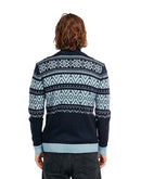 The Dale of Norway Bjornoy Sweater is a warm Norwegian sweater with a high collar made of soft merino wool. The elastic rib knit means the collar fits snugly around the neck without being too tight. The YKK® branded zipper can be opened wide for ventilation and also makes it easier to put on and take off. The modern Norwegian pattern goes well with jeans. Manufactured in Norway, it guarantees a high level of quality and, with proper care, a long lifespan. The sweater is machine washable using the wool program.