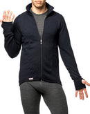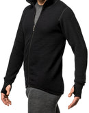 This extremely warm merino jacket was not only developed for the Nordic winter, but also made in Sweden. The Woolpower Full Zip Jacket 600 and its merino terry cloth structure on the inside, which creates plenty of space for warming air cushions thanks to a long-loop knitting technique, achieve the maximum possible warmth. The thick merino wool jacket offers outstanding warmth regardless of whether you are active and sweating or have to stay outside for a long time without much movement. The high collar and thumb loops protect against penetrating cold and snow. The full-length zip and elastic fabric make the merino jacket comfortable to put on and serves primarily as a middle layer of clothing over underwear, but can also serve as a warm outer layer in calm weather. The Ullfrotte 600 series from Woolpower is therefore the first choice not only for winter sports in extreme cold, but also as workwear made of merino wool, e.g. for hunters, police or the armed forces.