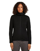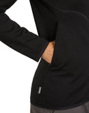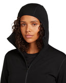 The Icebreaker Women Elemental LS Zip Hoodie is a very warm natural fiber fleece jacket with a hood and full-length zip. 560g/m² thick merino wool ensures reliable warmth without overheating quickly. The inside is slightly roughened and particularly cozy. The thermal midlayer offers the highest level of thermal comfort for universal use on the mountain, when skiing or running. The thermal midlayer is odor-binding and breathable and impresses with a natural, comfortable warmth that you will look for a long time in conventional fleece made of synthetic fibers! The environment also benefits, as no microplastics ends up in the wastewater.