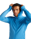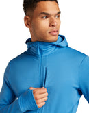 The Icebreaker Quantum LS Zip Hoodie for men is a thin midlayer that will keep you well equipped for all outdoor sports. Thanks to 100% merino wool, this lightweight hooded fleece jacket is a highly functional and warming middle layer of clothing for high-activity sports such as running, cycling, hiking or skiing. The thin hoodie is breathable, quick-drying and temperature-regulating. Odors are neutralized by the antibacterial properties of the wool fibers and do not settle in the fabric.