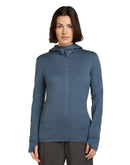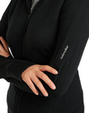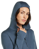 The Icebreaker Quantum LS Zip Hoodie for women is a universal midlayer made of pure wool (260 g/m² with a lightly terry inside) that will keep you well equipped for all outdoor sports. Thanks to 100% merino wool, this lightweight hooded fleece jacket is a highly functional and warming middle layer of clothing for high-activity sports such as running, cycling, hiking or skiing. The thin hoodie is breathable, quick-drying and temperature-regulating. Odors are absorbed by the antibacterial properties of the wool fibers and do not settle in the fabric.