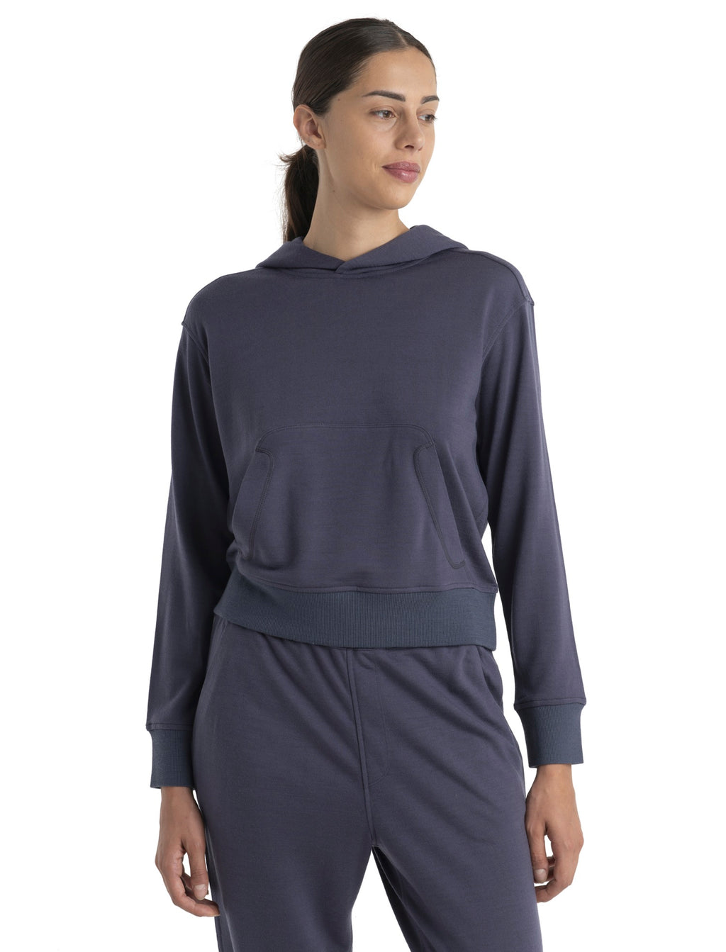 The Icebreaker Crush Hoodie for women is a comfortable training sweater made from a breathable Tencel®-Merino blend and offers luxurious comfort with natural temperature regulation thanks to the looped knitted inside. The casu...