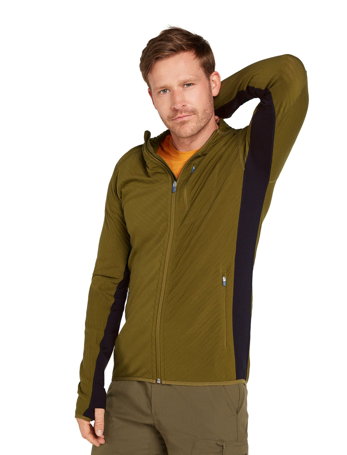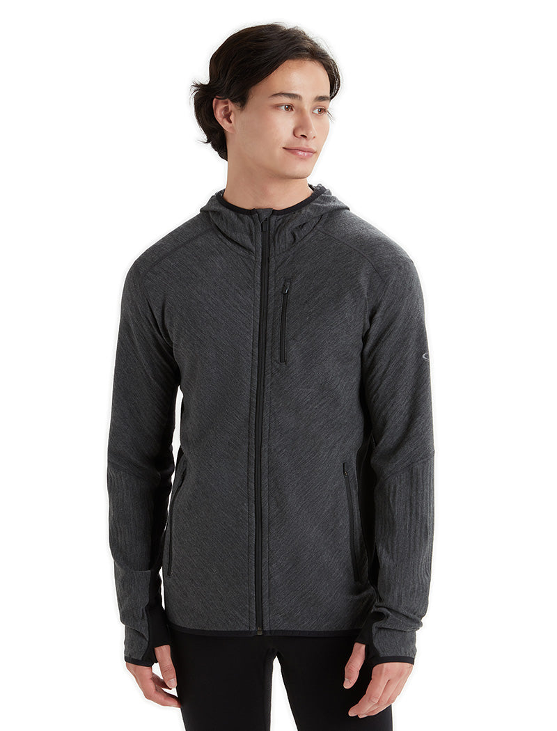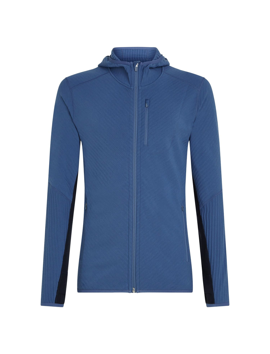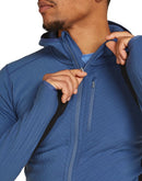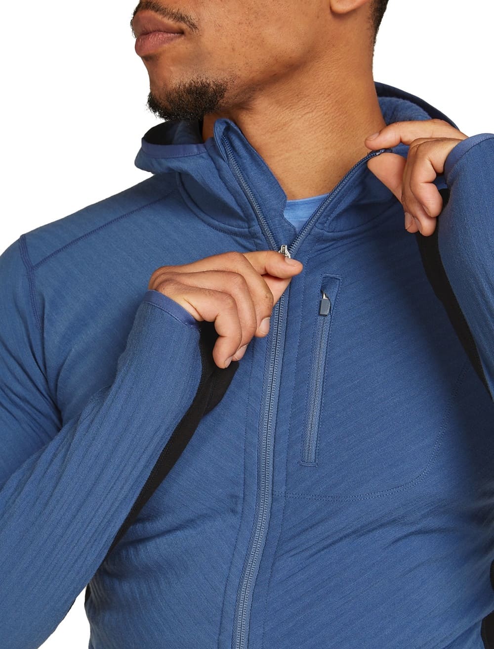 Merino fleece hoody for men with a waffled inner structure for more warmth with less material and effective moisture regulation. A highly functional hooded sweater made of merino wool with stabilizing synthetic fiber components for high elasticity and greater resilience. The Icebreaker Descender Hoody is the universal merino sportswear in the 2nd layer and ideal for mountaineering, ski touring or running.