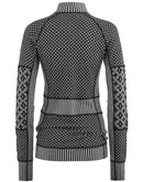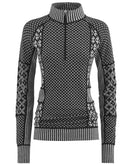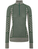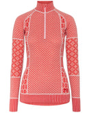 The Kari Traa Smekker Half Zip is a lightweight merino underwear top with a half zip and high collar. 100% merino wool keeps you pleasantly warm from below and simply feels first-class. The women's merino long sleeve is naturally breathable and odor-inhibiting and optimally balances the perceived temperature during changing exertion. Kari Traa stands for stylish Norwegian ski underwear made of merino wool, which was designed by women for women. The slightly ribbed jacquard knit inserts ensure a feminine line, while the main part consists of two different Norwegian patterns. The Kari Traa merino wool is animal welfare certified and mulesing-free .