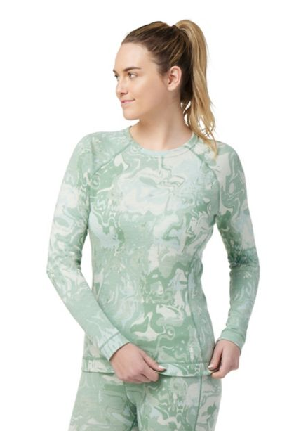 This warm merino base layer for women has an unusual marble pattern and a normal round collar. The Smartwool long sleeve is pleasantly soft thanks to 100% merino wool, which is processed using an interlock knitting process, an...