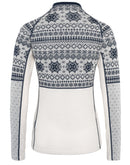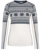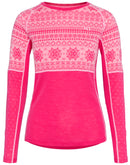 The Kari Traa Vilma Longsleeve is a comfortable and warm sports underwear for the whole winter thanks to 100% merino wool in medium thickness and has a timeless and fresh design thanks to the classic Norwegian pattern. This means that the long-sleeved shirt can be used both as functional underwear for winter sports and as chic clothing for everyday use. The Vilma Longsleeve is 100% microplastic-free and the merino wool used is animal welfare certified and skin-friendly. The fine wool quality offers the highest level of comfort, reliable odor inhibition and a wide range of uses.