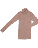 The Engel Merino silk turtleneck for women has a comfortable natural fiber blend that covers a very wide temperature range. Merino wool and silk complement each other perfectly. The material warms in the cold and cools in the heat and during activity. Sweat is quickly absorbed and no unpleasant odor develops.