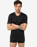 The Super.Natural Sierra 140 Tee for men is a thin functional shirt with a V-neck that has a cooling effect in hot weather. The innovative combination of the finest merino wool and high-quality performance polyester makes the T-shirt particularly quick-drying and odor-resistant for a long time. It is also particularly soft and comfortable on the skin.