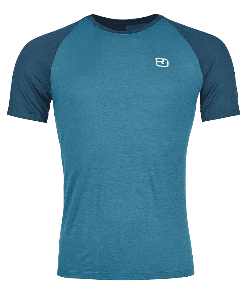 The Ortovox 120 Tec Fast Mountain T-shirt for men is light, stretchy and can be packed very small. The special yarn structure, in which Tasmanian merino fibers are spun around a core of polyamide filaments, provides the necessa...