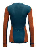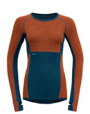The Devold Tuvegga long sleeve for women is reversible and has a warmer (ribbed) side and a cooler (smooth) side to further enhance the climate-regulating properties of the merino wool. The ribbed side worn inwards creates more warming air cushions, while the other way around the surface is larger on the outside than on the inside, thus increasing the suction effect for sweat wicking.