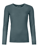 Single-coloured long-sleeved functional shirt for women from the Ortovox 150 Cool series, in which merino wool and Tencel® (natural wood-based fibre) ensure extra soft comfort. The natural fibre combination also makes the Ortovox long-sleeved shirt more breathable and stable, which is an advantage when the activity level is high and when carrying a backpack. The Merino-Tencel® shirt reliably binds odours and can be worn several times in a row on multi-day tours without washing.