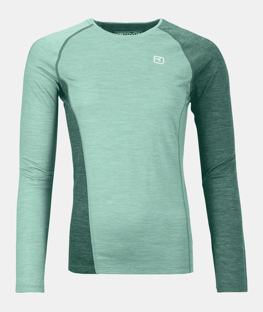 This long-sleeved Ortovox Merino functional shirt for women is ideal for carrying with a backpack thanks to its color-contrasting flat seams and raglan sleeves. The material mix of 17.5 micron fine merino wool and the natural f...