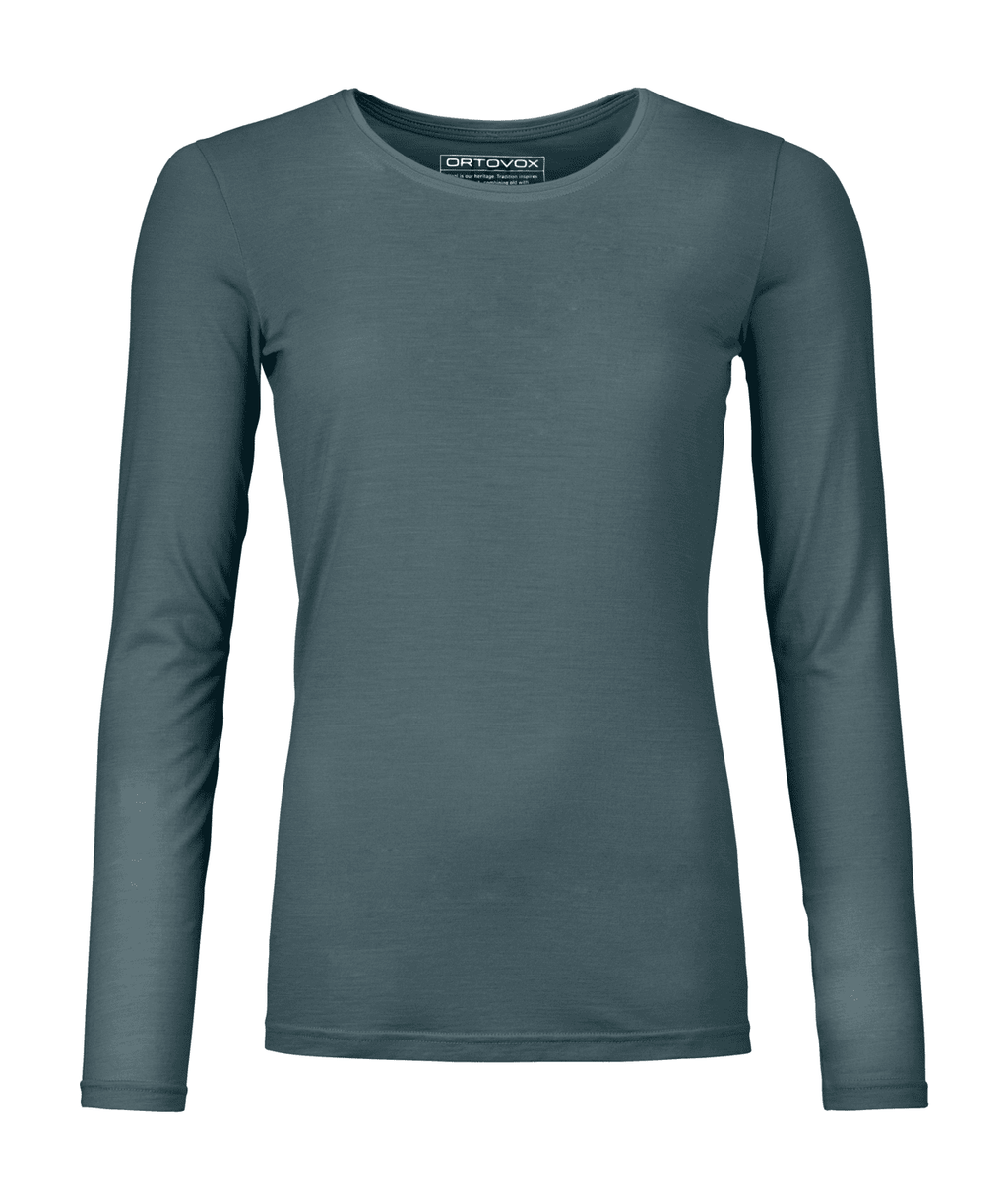 Single-coloured long-sleeved functional shirt for women from the Ortovox 150 Cool series, in which merino wool and Tencel® (natural wood-based fibre) ensure extra soft comfort. The natural fibre combination also makes the Ortov...