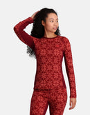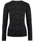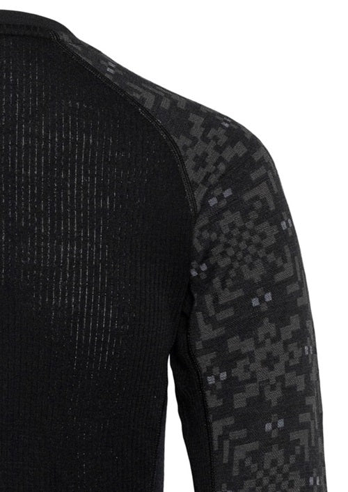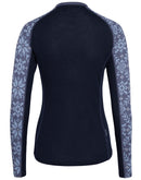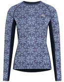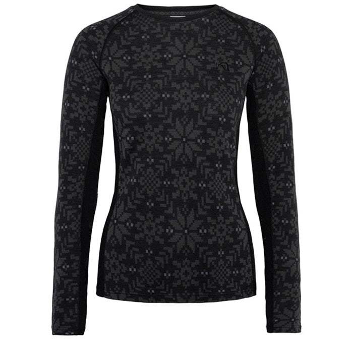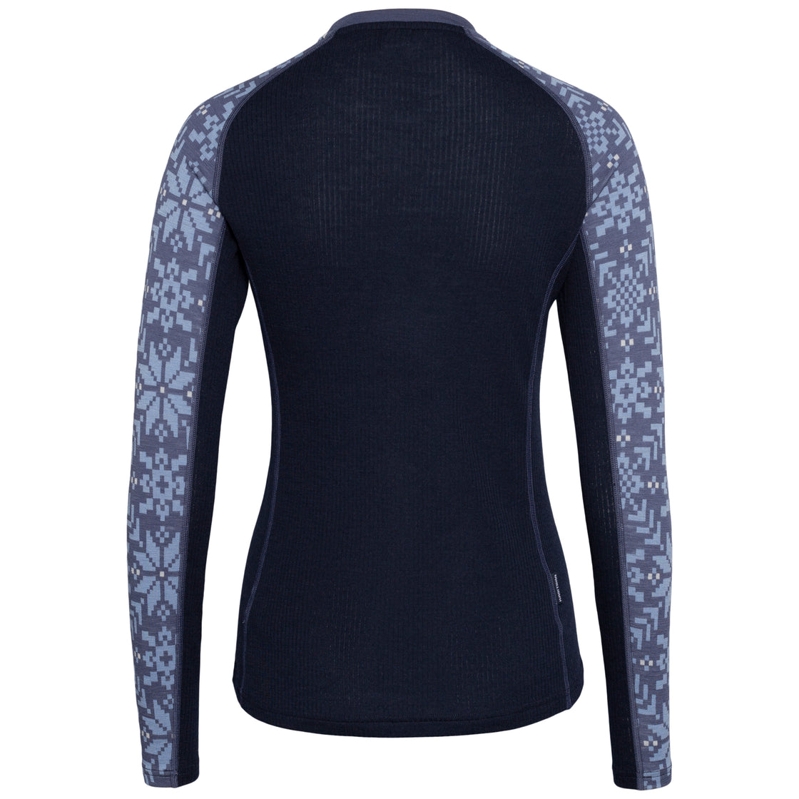 The Kari Traa Edith Long Sleeve offers 100% merino comfort and is particularly soft and skin-friendly. The Nordic star pattern puts you in a winter mood and is suitable for a wide range of uses for any type of sport in the cold season. Underarm panels improve the slim fit and flat seams prevent friction and pressure points. A single-colored and particularly elastic fine rib part is used on the back. The sweat is quickly absorbed by the merino wool and there is no odor even after prolonged wear. The moisture is evenly wicked away without increased evaporative cooling as with synthetic fibers.