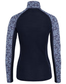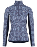 The Kari Traa Edith Half Zip offers 100% merino comfort and is particularly soft and skin-friendly. The Nordic star pattern puts you in a winter mood and is versatile for any type of sport in the cold season. Underarm panels improve the slim fit and flat seams prevent friction and pressure points. The collar keeps the neck warm and a zipper garage protects the chin. Sweat is quickly absorbed by the merino wool and does not smell unpleasant even after prolonged wear. The moisture is evenly wicked away without causing increased evaporative cooling as with synthetic fibers.