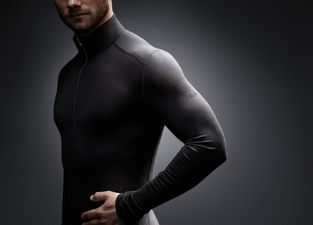 Extra warm merino ski underwear top for men in 320g/m² fabric thickness and high zip collar. 100% merino wool provides reliable warmth even in icy temperatures. Thanks to the classic, non-tight cut, the Icebreaker Original Half...