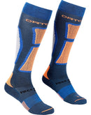 These high-cut merino socks for men keep your feet warm even when ski touring and skiing in the middle of winter. Thanks to the high proportion of merino wool, these ski socks also prevent unpleasant odors in your ski boots. The sole area of the Ortovox Rock'n'Wool Socks is cushioned, the heel is reinforced and at the same time the double stretch cuffs ensure a perfect fit without slipping. The zone-specific mesh and rib structures improve sweat wicking. Both socks are adapted to the anatomy of the foot and each shaped separately.