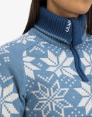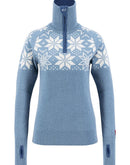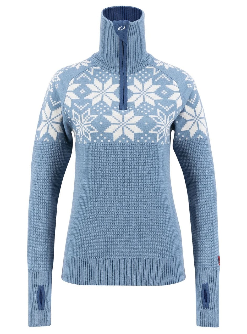 This thick turtleneck sweater made of 100% fine wool and Norwegian design is a classic Ulvang sweater. The Rav Kiby Sweater for women is elastic and fits the upper body perfectly. The soft new wool sweater has a high turtleneck with a zipper garage to protect the chin. The collar is in a contrasting color on the inside, as is the edging of the thumb loops, which keep the sleeves in position and prevent snow and wind from getting in. The extra warm sweater is a universal wool midlayer for winter sports and everyday life.