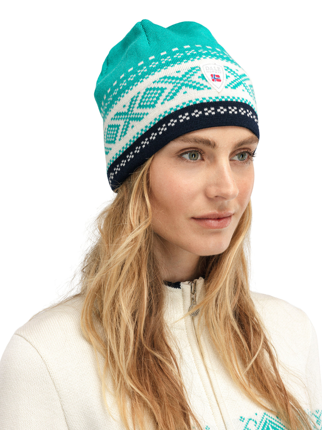Le Dale of Norway Dystingen Hat est un chapeau en laine mérinos d'épaisseur moyenne avec un motif très populaire en Norvège et qui s'associe avec tous les hauts "Marius". La laine mérinos est une maille fine et lisse (maille légère) et repousse la neige. Le bonnet mérinos norvégien original équilibre bien la température et est idéal pour le ski ou d'autres sports d'hiver qui font parfois transpirer.